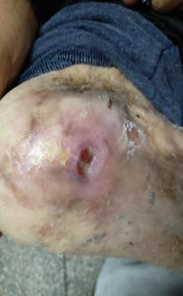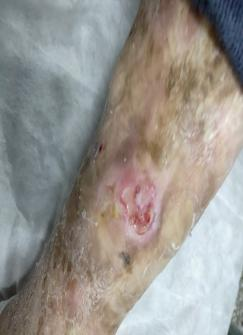 因为事故受伤造成10几年伤口无法愈合。