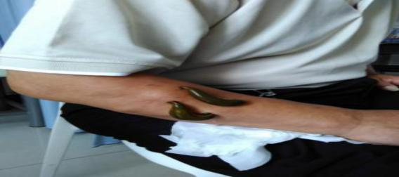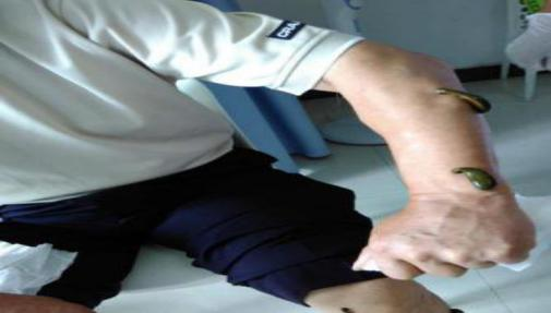2016年5月15日经多次考察后决定接受活体水蛭疗法,经水蛭调理后手上的粉瘤变小了,变软了,这让他非常惊喜!同时买了18瓶水蛭素回上海服用,感谢科康科技集团,感谢黄院长带领的专家组,感谢小蚂蟥。