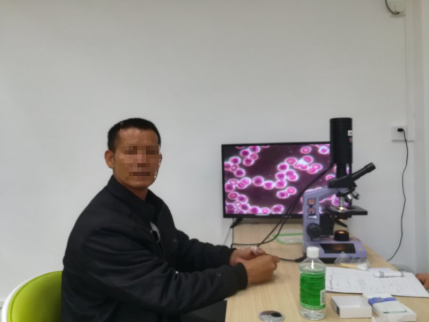 2018年12月,陈文亮因病被送往陆川人民医院时,言语不清,左手完全不能动颤,没有了知觉,活动障碍,医院诊断为脑梗塞。住院半个月后出院,出院后,口语清晰,左手能抬高到胸部但僵硬麻木,五个手指不能抓东西,不能自主活动。活体疗法之前一滴血检测,结果显示血液重度粘稠,红细胞黏连聚集严重,血流速度缓慢。