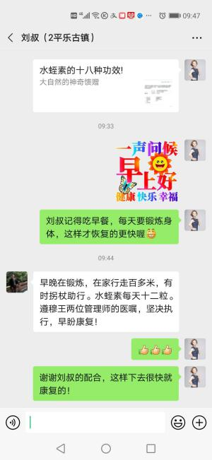 2020年8月15号体验水蛭活体疗法和食用天然水蛭素水蛭素,到现在两个月的时间,从以前走路缓慢,需用拐杖助行,现在已经可以自己行走百米。