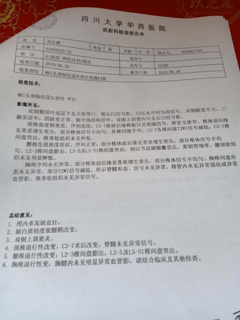 脱髓鞘、血管硬化、颈动脉有斑块,引起行动不便双下肢僵硬,有六年多时间。