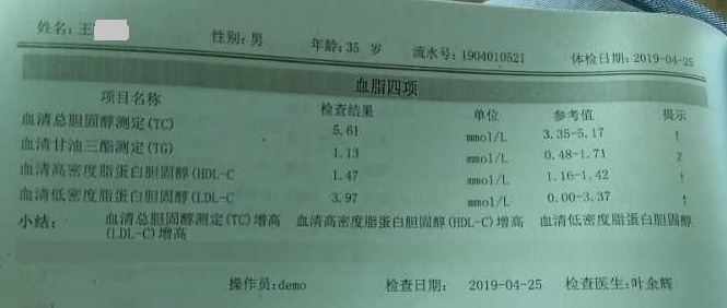 低密度脂蛋白:4.38mmol/L、高密度脂蛋白:1.71mmol/L
